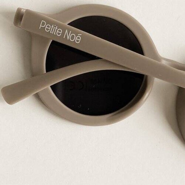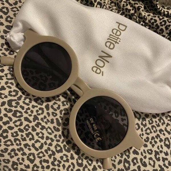 Een zonnebril voor zowel jongens als meisjes. De zonnebril is zandkleurig en heeft een rond model.